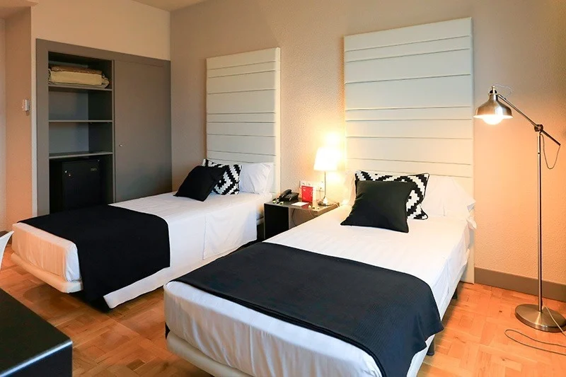 Con dos camas individuales y vistas a la calle exterior, es perfecta para amigos, compañeros de trabajo o viajeros que prefieren dormir por separado. Moderna, luminosa y equipada con todas las comodidades: aire acondicionado, calefacción, escritorio, Smart TV, conexión wifi y baño completo.