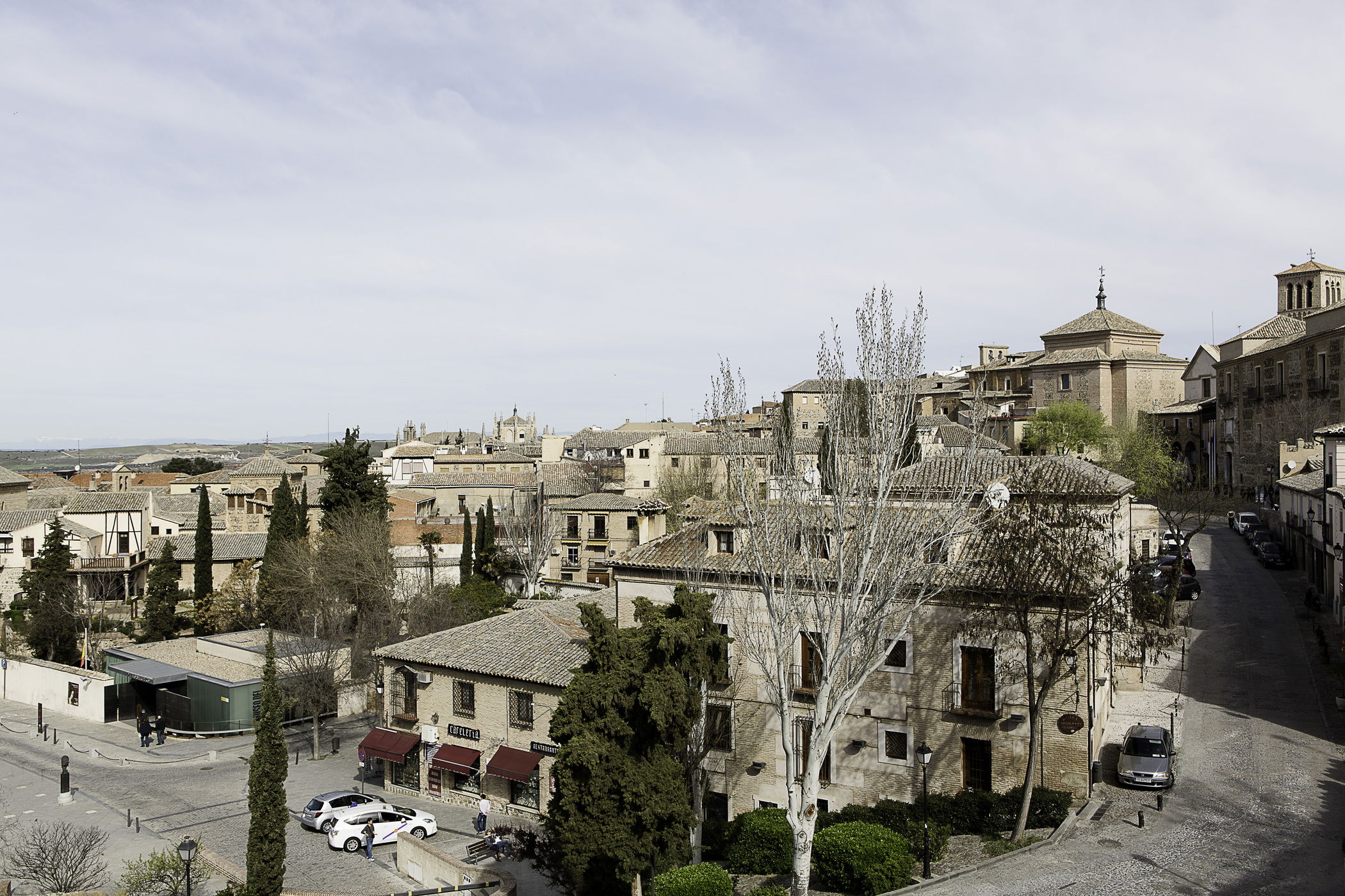 El Hotel Pintor El Greco está situado en la calle Alamillos del Tránsito, junto al Paseo del Tránsito y a pocos pasos del Museo del Greco. Si llegas en tren desde Madrid, la estación de Toledo está a solo 10 minutos en taxi. También puedes venir en coche: contamos con acuerdos con parkings cercanos. Para quienes llegan en autobús o desean moverse a pie, el hotel se encuentra en una zona completamente accesible.